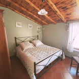 The bathroom with a shower comes complete with a hairdryer, soaps, and a toiletries kit for each guest, while the wooden ceiling with exposed beams lends Luretta a warm and inviting atmosphere. At the entrance, you can enjoy a spacious terrace, divided by planters and furnished with small tables and chairs—ideal for outdoor lunches or moments of relaxation on summer days, when temperatures here are pleasantly cooler (about 5-6 degrees lower than in town). The sliding shutters complete the setting, ensuring privacy and comfort at all times of the day.